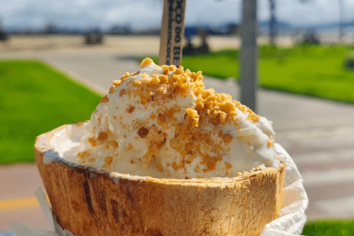 Sorvete no coco: a novidade nordestina que conquistou a orla de Santos