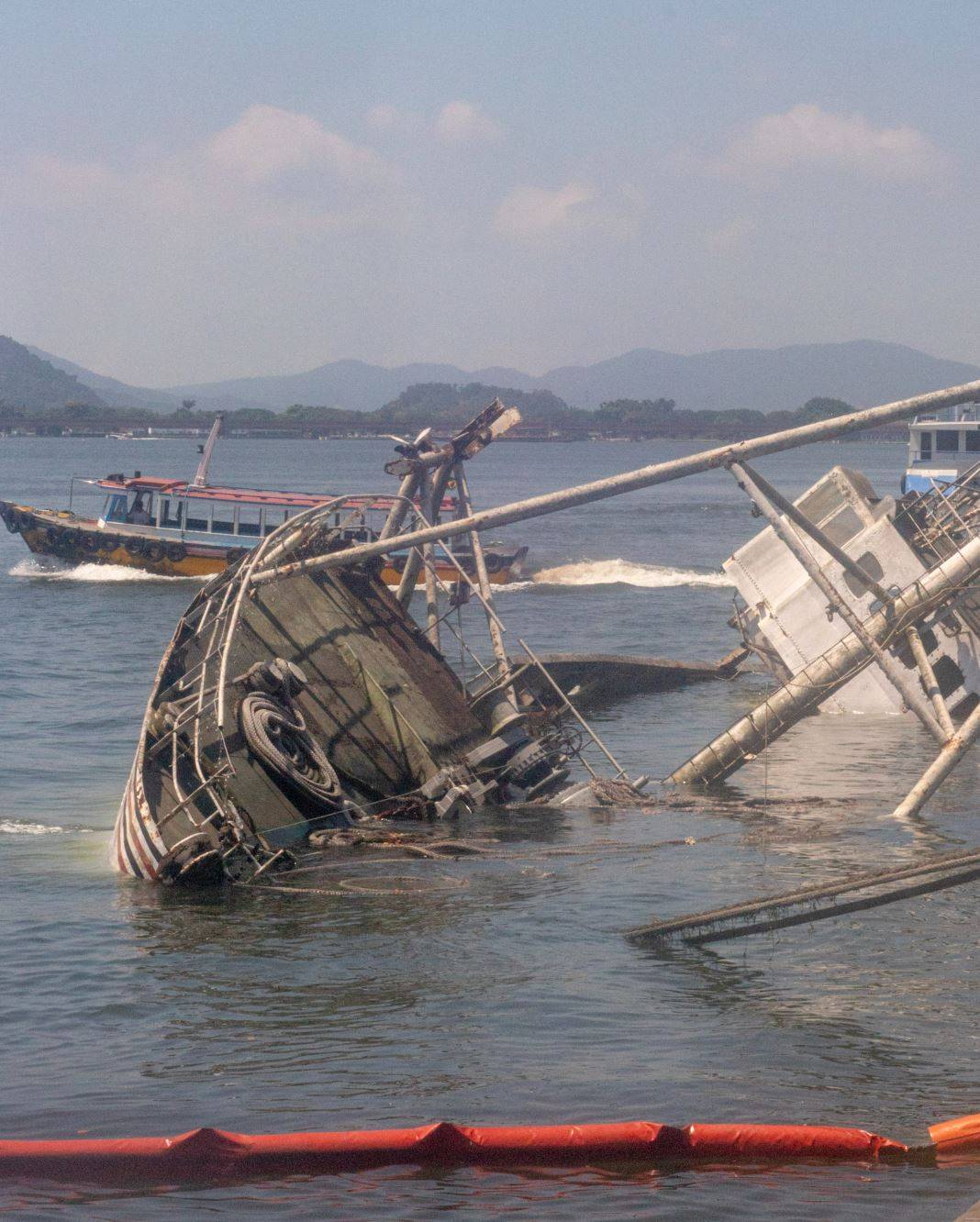 Navio histórico Besnard começa a ser retirado após adernar em Santos