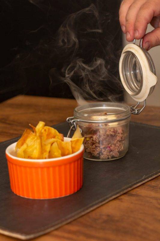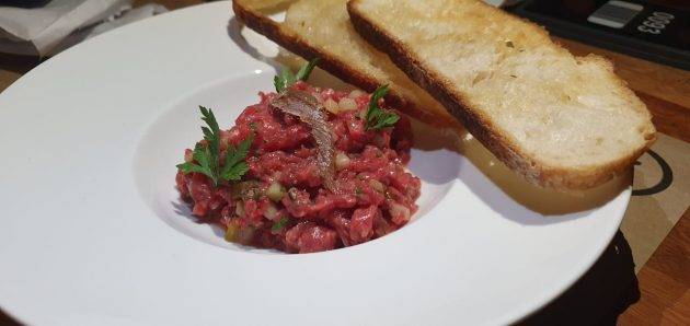 Em resumo, por lá, o prato é preparado com filé mignon cru, picado na ponta da faca, com cebolas roxas e alcaparras misturadas com molho especial. E acompanha chips de tubérculos. O prato é servido de quarta a sexta, no jantar; sábado, no almoço e no jantar, e domingo, no almoço. Também dá para pedir no delivery.