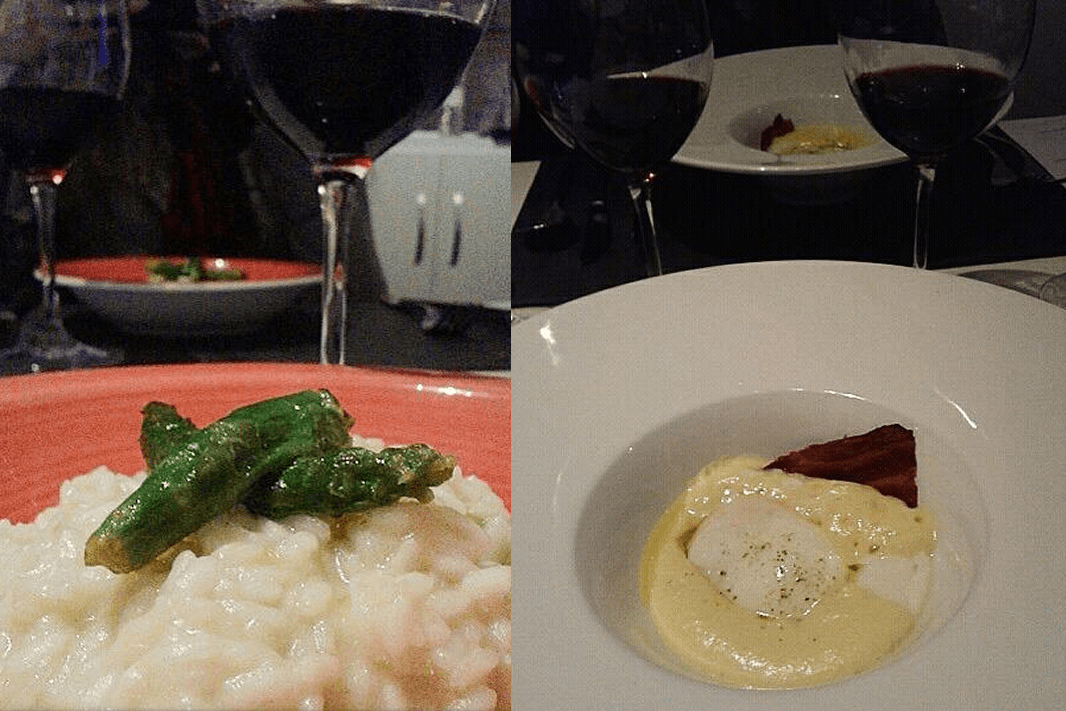 O cardápio trazia o couvert da casa; ovo perfeito acompanhado de purê de mandioquinha e bacon crocante; risoto de aspargos; picanha grelhada ao molho de vinho tinto com fritas rústicas e de sobremesa Anita e Garibaldi (como um Romeu e Julieta, mas com queijo roquefort) e tiramisú (sobremesa tradicional italiana à base de café).