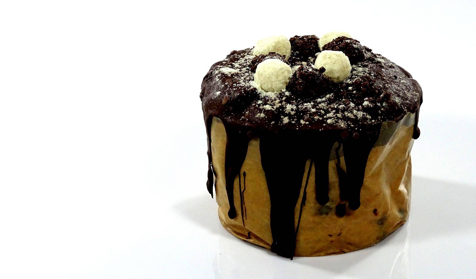 Todo mundo gostou e não imaginava que seria uma produção do mercado. A massa é levemente úmida e não há economia nas gotas de chocolate e no recheio – o que nós provamos era de ganache de chocolate. A cobertura tem lascas de chocolate branco e ao leite e cereja.