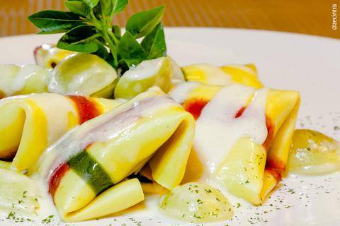 - Prato Principal: Sfogliati de queijo brie com presunto Parma ao molho de uva ou Tortelloni de queijo camembert com shimeji servido na manteiga de sálvia