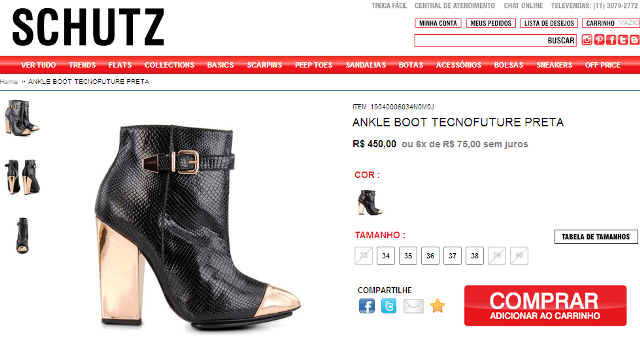 O preço das ankle boots são equivalentes aos das botas cano longo. Sim, mesmo tendo metade do couro, os preços variam com a moda, vocês sabem…