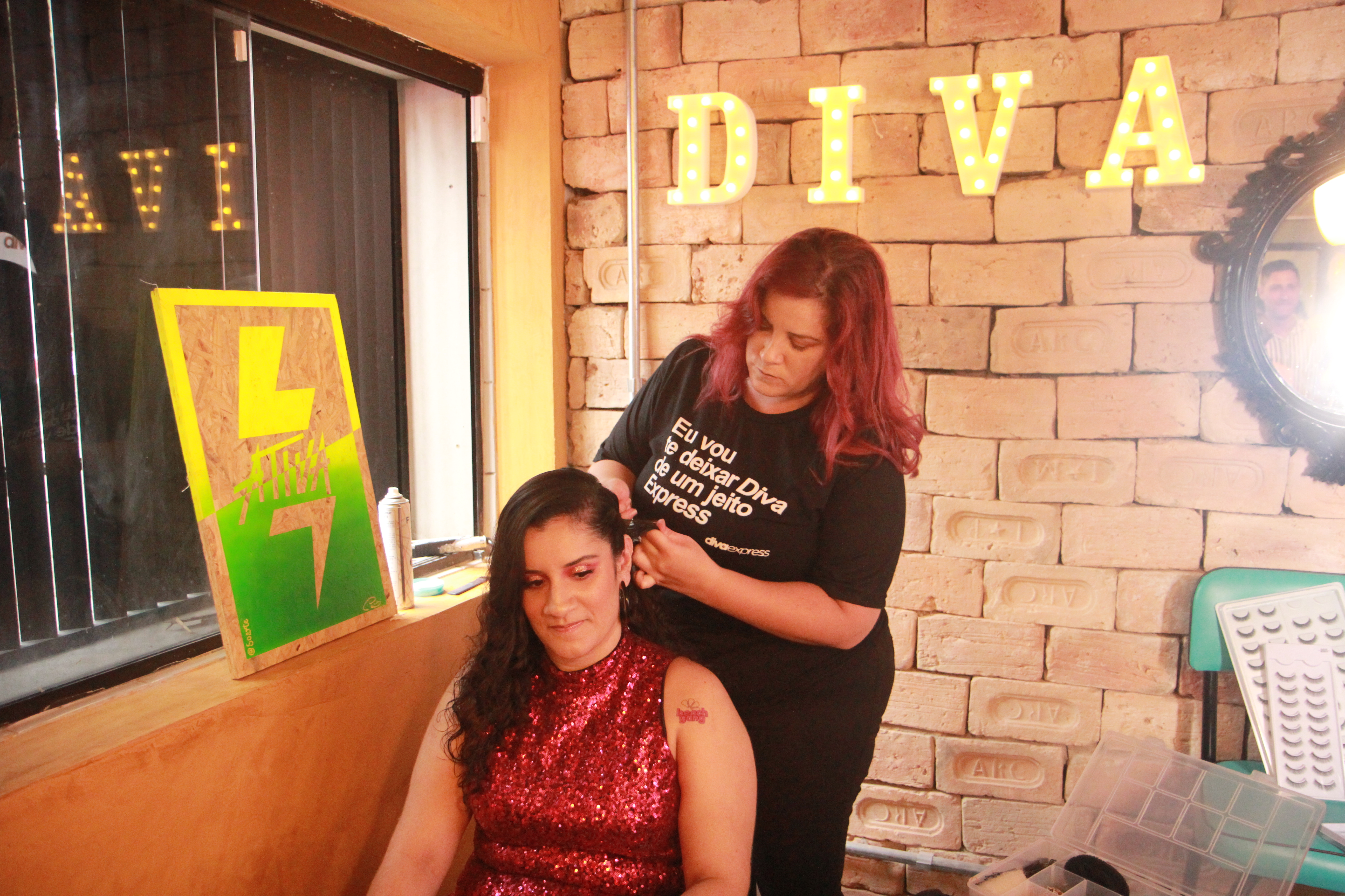 Outra ativação que tivemos foi o camarim da Diva Express, que ficou durante a festa inteira arrumando os cabelos e maquiando as peles das nossas convidadas. Nós também fizemos nossas makes e penteados lá na festa e adoramos o cuidado que recebemos das divas.