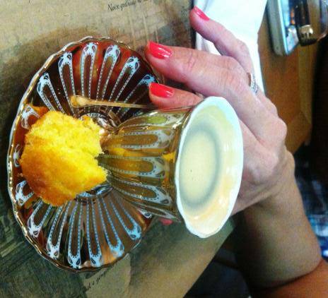 Pra encerrar a farra gastronômica um cafézinho (com adoçante, por favor!) servido numa xícara da vovó coisa linda de Deus!