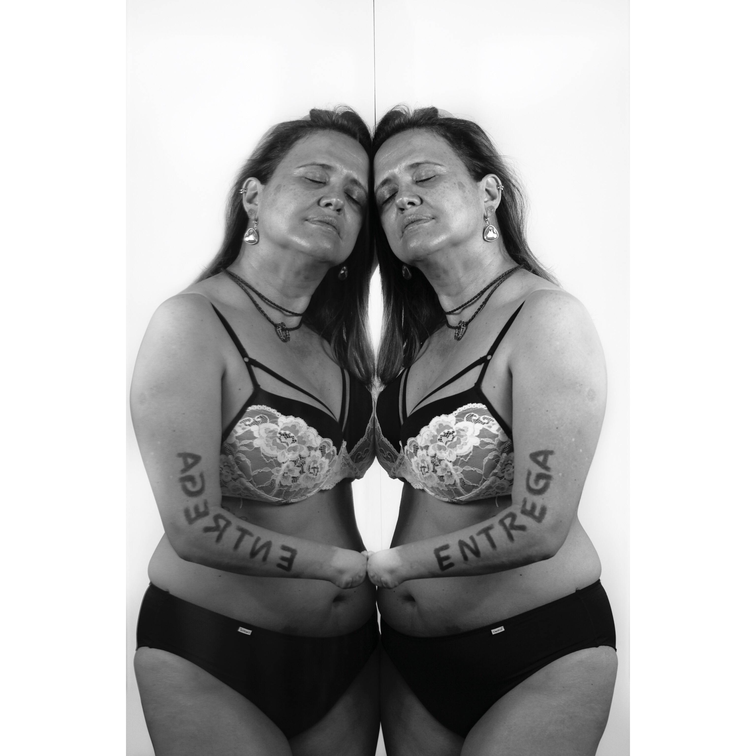 Além disso, cada mulher traz em seu corpo a palavra escolhida estampada com batom.