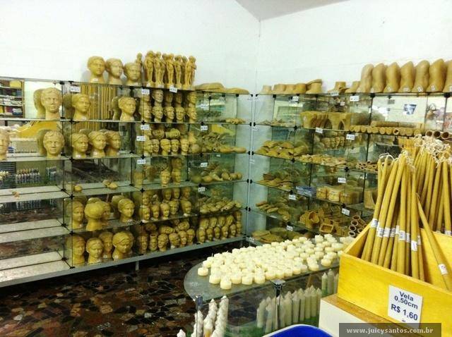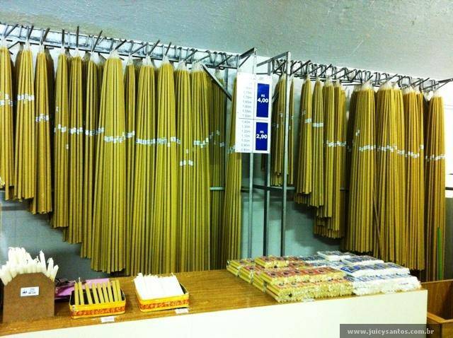 Andei por ali um tempo. Sentei, apreciei, rezei. Antes de ir embora desci ao subsolo pra comprar uma vela. Qual não foi minha surpresa ao ver a quantidade de velas, de todos os tamanhos e formatos, disponíveis. Em forma de pedaços do corpo ou de tamanhos de pessoas reais, as velas são objetos de promessas de muita gente: