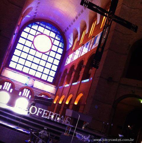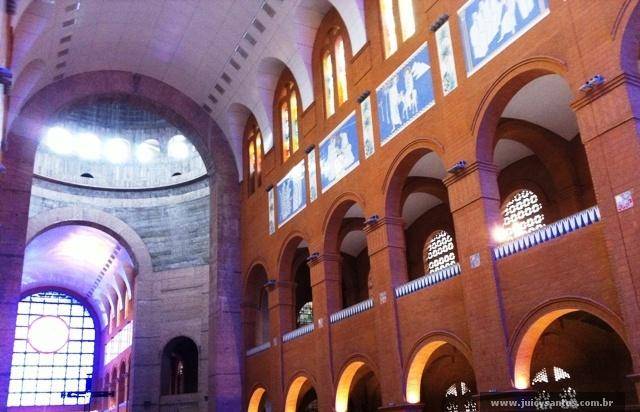 Por dentro a Basílica não me pareceu tão grande. Em formato de cruz, o altar fica no meio da nave. O que faz você conseguir ver a celebração de praticamente qualquer lugar que esteja.